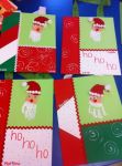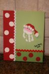 I did. There are 12 kids in his class. So I had to make 12 canvases. I painted the background at home. It took a little bit of time...okay, so a lot of time. I did 6 during on FL football game and the other 6 after the kids went to bed that night. Then I went to the class and did the kids' hands one Friday. They needed time to dry...so then I went back the following week and we cut out the hats, added the white pom poms, nose, and eyes.